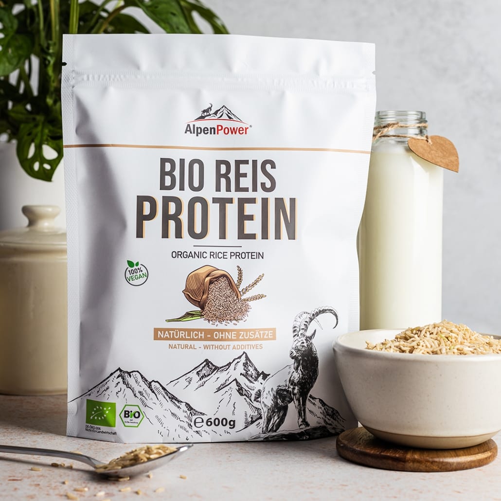 Rice protein is very well tolerated and can be used as a substitute for animal based protein such as whey protein. It has a high proportion of vital substances (beta-carotene, vitamin b1, ….), minerals (calcium, potassium, magnesium, …) and trace elements (iron, zinc, manganese, …), which can be optimally absorbed by the body. Rice protein also has an excellent amino acid profile. Especially for vegans, rice protein can be an excellent alternative to meet your daily protein needs.