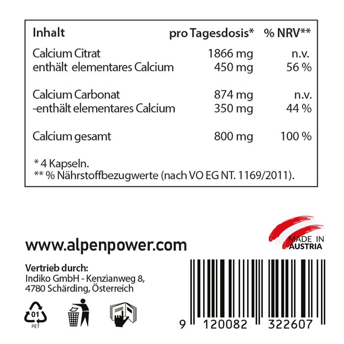 Durch unsere speziell entwickelte Formel, bei der wir Calcium-Citrat und Calcium-Carbonat kombinieren, wird eine optimale Aufnahme des Calciums durch den Körper gewährleistet.