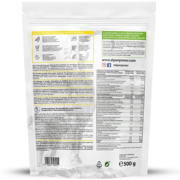 Unser Clear Vegan Protein zeichnet sich durch seine transparente, klare sofdrinkähnliche Textur aus, die es von herkömmlichen Proteinshakes abhebt. Es ist leicht und erfrischend, perfekt für diejenigen, die sich nach einem leichten und bekömmlichen, rein pflanzlichen Proteindrink sehnen. Unser Clear Vegan Protein wird aus hochwertigem Erbsenprotein- Hydrolysat hergestellt. Jede Portion liefert reichlich Protein, um die Muskeln nach dem Training optimal zu versorgen und das Muskelwachstum zu unterstützen. Unser Clear Vegan Protein ist eine innovative, rein pflanzliche und leichte Alternative zu herkömmlichen Proteinshakes und ähnelt mehr einer Limonade als einem Proteinshake.
