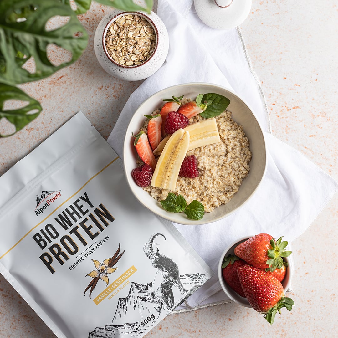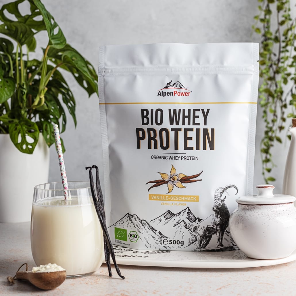 30g (ca. 3 Esslöffel) Proteinpulver in 300 ml Milch, pflanzlichen Milchersatz (Haferdrink, Kokosdrink, Reisdrink) oder Wasser geben und anschließend mit einem Shaker oder Mixer vermischen. Zuerst die Flüssigkeit in den Shaker füllen, danach erst das Whey Protein hinzufügen und für 20 Sekunden kräftig schütteln.