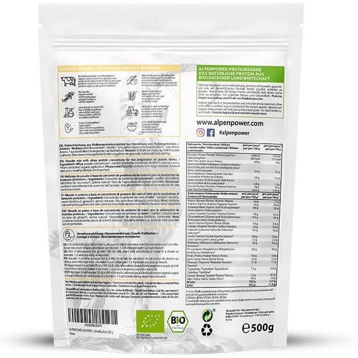 Qualitativ sehr hochwertig, löst sich gut auf und der Geschmack ist sehr gut. Keine Zusatzstoffe wie Süßstoffe, das findest man auf dem Markt sonst sehr selten bis garnicht. Das war für mich auch der ausschlaggebende Punkt, weshalb ich mir Proteinpulver von Alpenpower bestellt habe. Ich kann jedem nur empfehlen ein paar Euro mehr zu zahlen, dafür aber auf schädliche Süßstoffe zu verzichten. Danke für die Produkte!